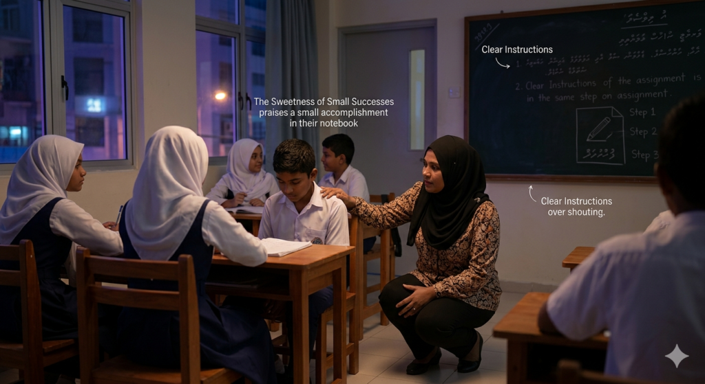 ގިނަ ފަހަރަށް ދަރިވަރުން ފަސްޖެހެނީ މަސައްކަތް ކުރަންވީ ގޮތް ސާފުނުވާތީއެވެ. “ދޭ އެއްޗެއް ނޭނގޭ” ކަމަށް ބުނެ ހަޅޭއްލެވުމަކީ ހައްލެއް ނޫނެވެ. ސެމިއުލް އިރުޝާދު ދެއްވަނީ ބަހުގެ ސާފުކަން އިތުރުކުރުމަށެވެ. މަސައްކަތްތައް ފިޔަވަޅުތަކަކަށް ބަހާލައި، ނަމޫނާ ދައްކައިދީ، ކުއްޖާގެ ހިތުގައި އުފެދޭ އޮޅުންބޮޅުންތައް ފިލުވައިދިނުމަކީ ނަތީޖާ ބަދަލުކޮށްލާނެ ކަމެކެވެ. އަޑުގަދަވުމަށްވުރެ އިރުޝާދު ސާފުވުން މާ މުހިންމެވެ.